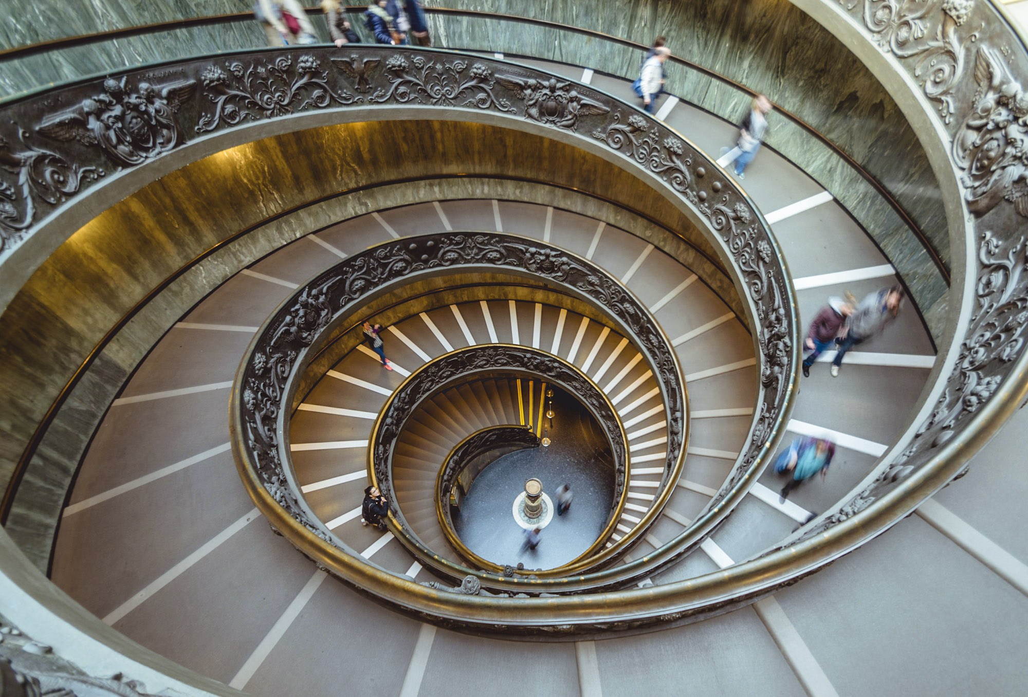 Realmente no son las escaleras de Bramante, son unas que se construyeron en los años 30 inspiradas en las originales, que se encuentran en otra parte no accesible al público en general. No por eso son menos espectaculares. Unas escaleras de doble hélice que son impresionantes.
