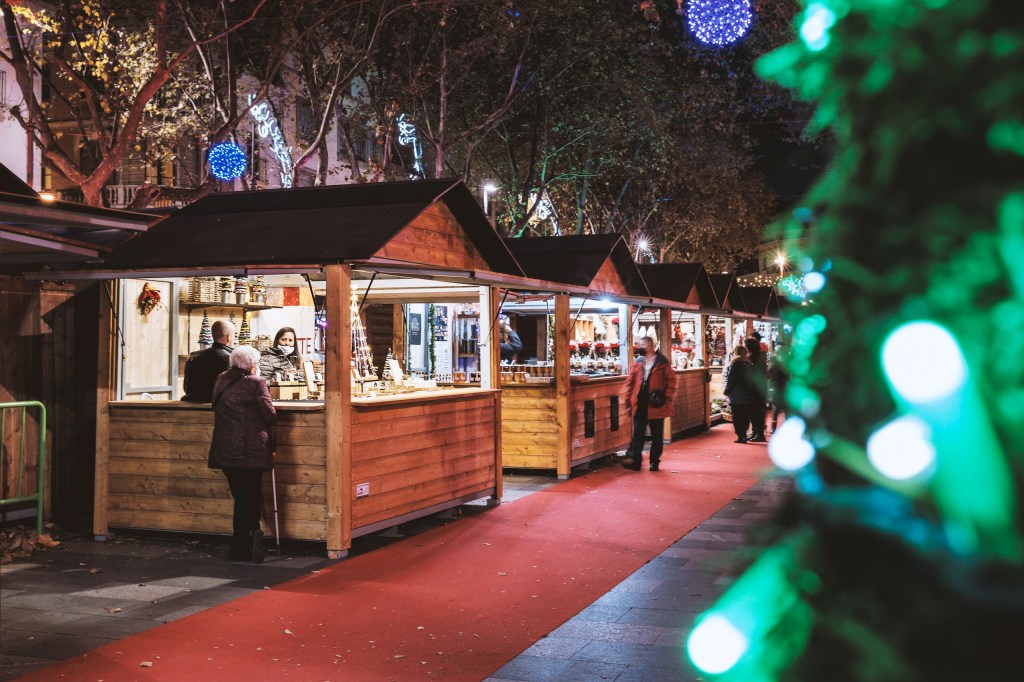 Casetas del mercat de nadal de Figueres, prácticamente no había nadie y los que había, con mascarillas, como debe ser!