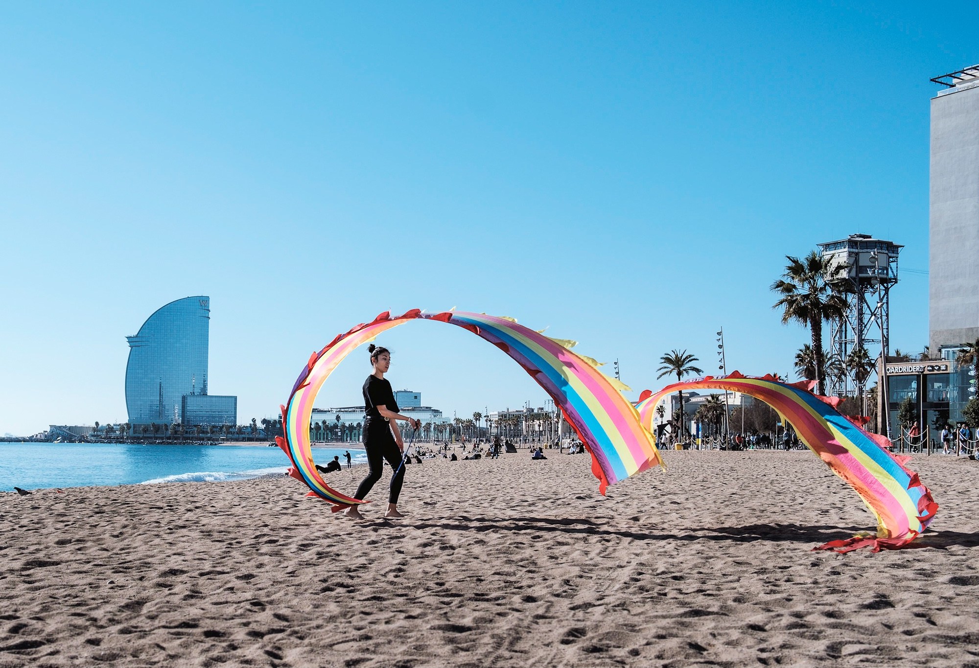 Me quedé un rato embobado mirando como la tela hacía ondas en el aire al ritmo de una música que no se de donde de venía. Primero opté por poner de fondo el hotel. Pero otro día os enseño las fotos que le hice de más cerca.