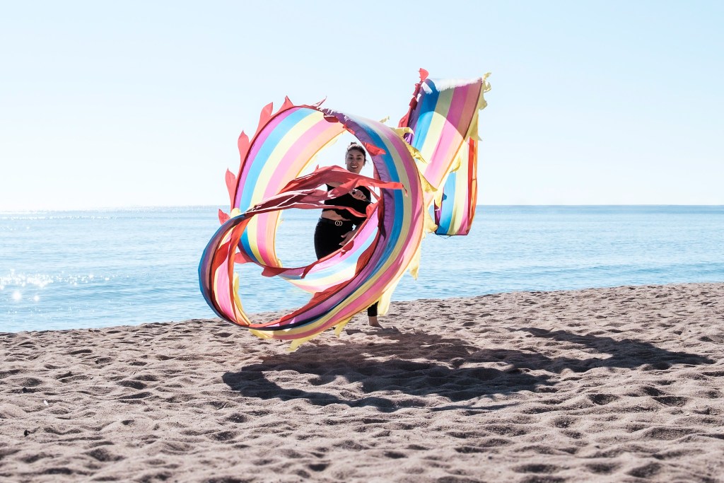 Los movimientos hipnóticos y sinuosos de la cinta parece que vayan a salirse de estas fotos. La fuerza que tenía que hacer para poder mover toda esa tela no era poca, yo sería incapaz de estar tanto rato. 👏🏾 Bravo! Además, sin perder la sonrisa!