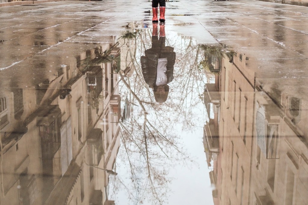 Mi hija quería ir a la playa, pero hacía mal día así que le planté las botas de agua y nos fuimos a dar una vuelta a la Barceloneta. Se lo pasó pipa y yo aproveché para hacer algunas fotos de reflejos con ella😍