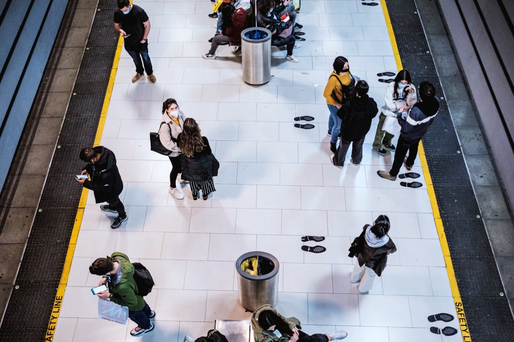 Estaba mirando por el hueco que hay en la estación de renfe en Plaça Catalunya y pensé que era lo suficientemente interesante para hacer una foto, la geometría que formaba la gente quieta, sus acciones o inacción, hablando en grupo o mirando el móvil… y de golpe! Pues sí, no esperaba que nadie mirara hacia arriba mientras hacía esta foto. Ahora me gusta mucho más!