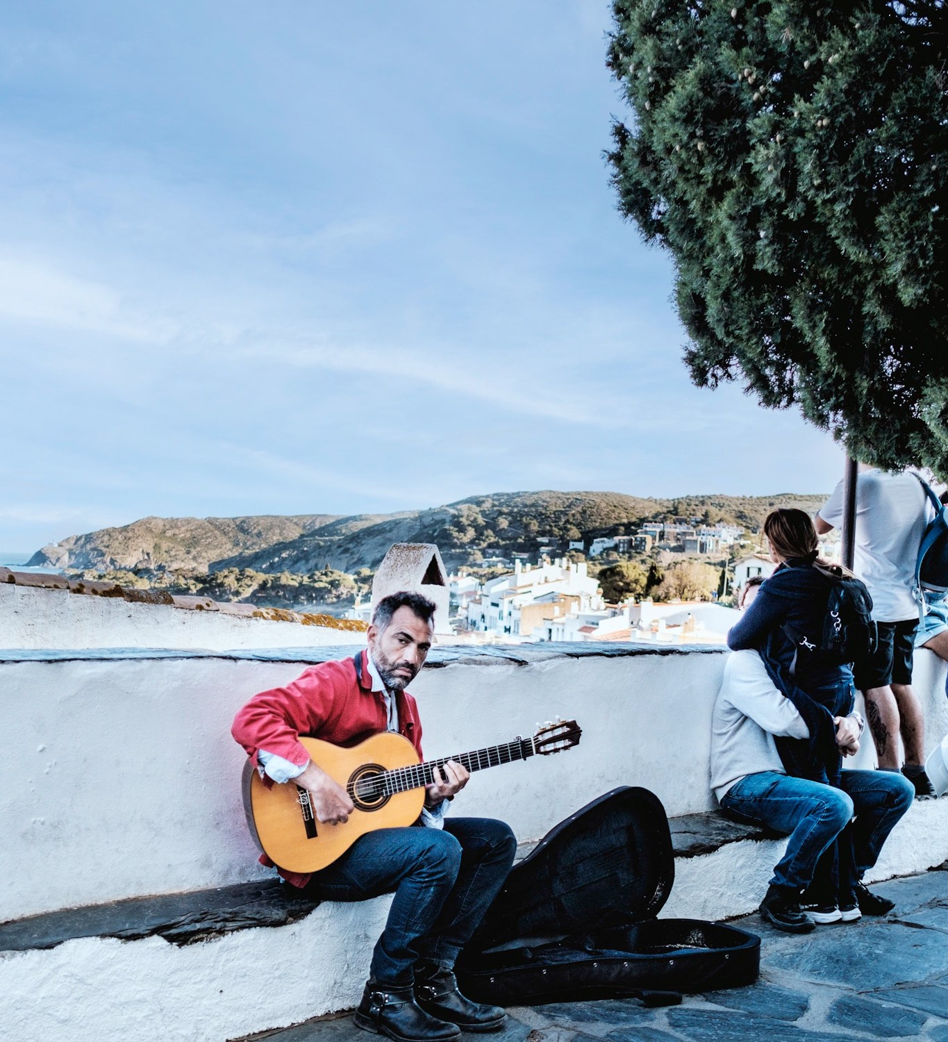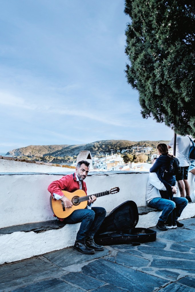 Y sales de la iglesia de Santa Maria de Cadaquès y te encuentras un músico en la pequeña placita que hay, llena de gente, pero tampoco mucha. Tocando unos acordes amenizando las fantásticas vistas que hay desde ahí 😍