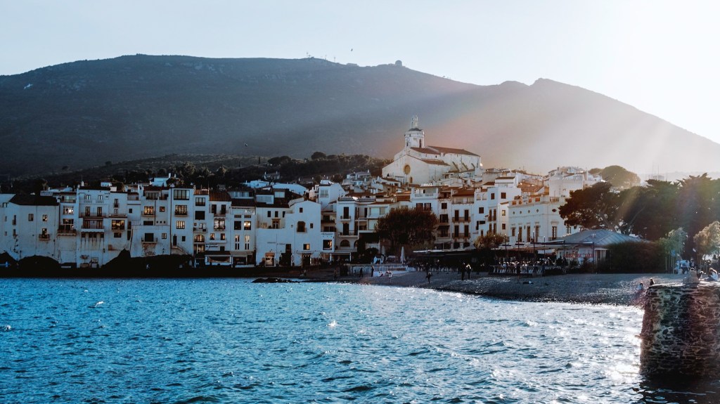 Cadaquès en la puesta de sol. Ya es un pueblo bonito, pero con esa cortina de luz que lo baña como con un halo divino le da un aire de lugar fantástico!