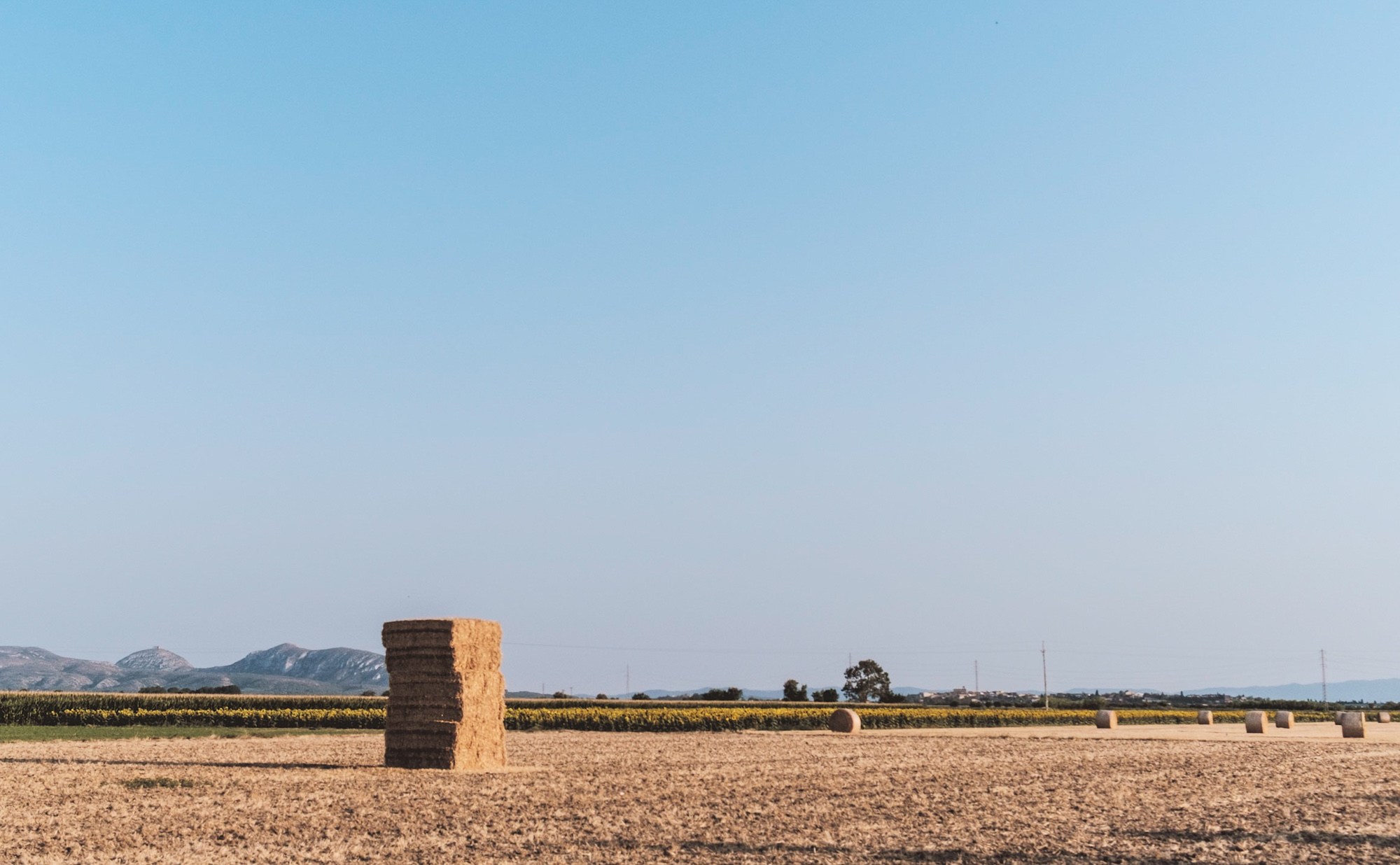 Unas bales de palla con Torroella de Montgrí de fondo.