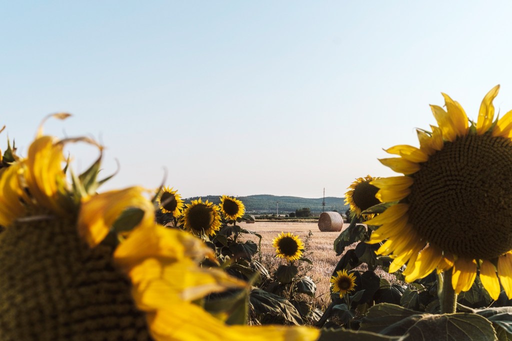 Y de entre los girasoles asomó una bala de palla que quería destacar de entre los dorados pétalos de las innumerables flores de pipas…