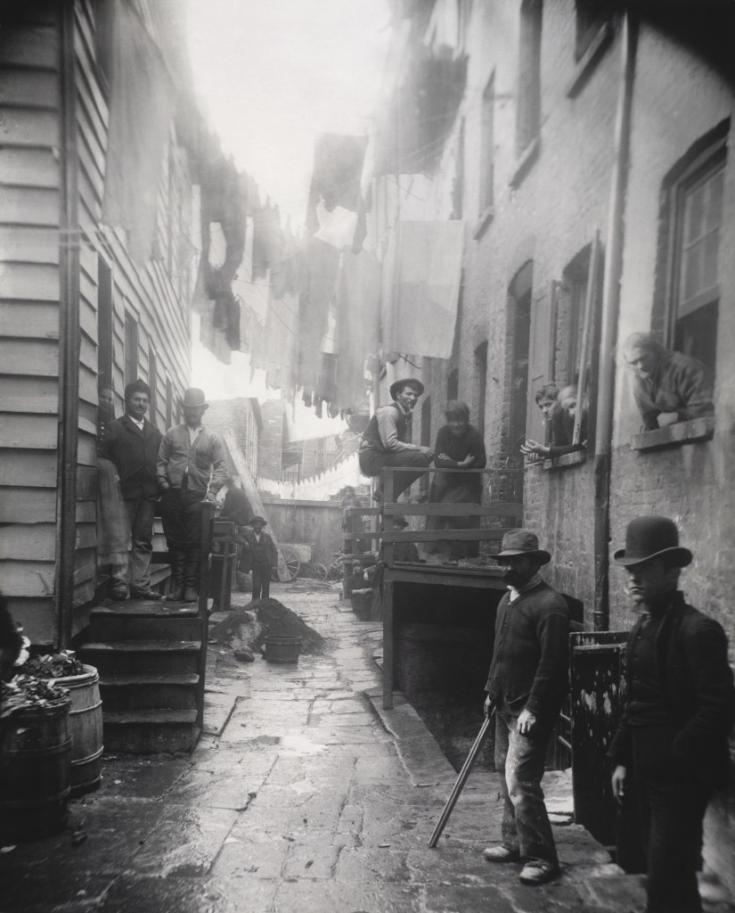 No voy a negar que me he inspirado en proyectos que ya existen, por ejemplo How The Other Half Lives, de Jacob A. Riis, un estudio sobre las condiciones de vida en los barrios pobres de Nueva York en el siglo XIX. Riis, un periodista y fotógrafo, documenta las condiciones de vida en los barrios pobres y las dificultades que enfrentan sus habitantes. El libro es una crítica social y una llamada a la acción para mejorar las condiciones de vida de los pobres en la ciudad. Hay varias fotos que me encantan y esta en particular titulada Bandits Roost.