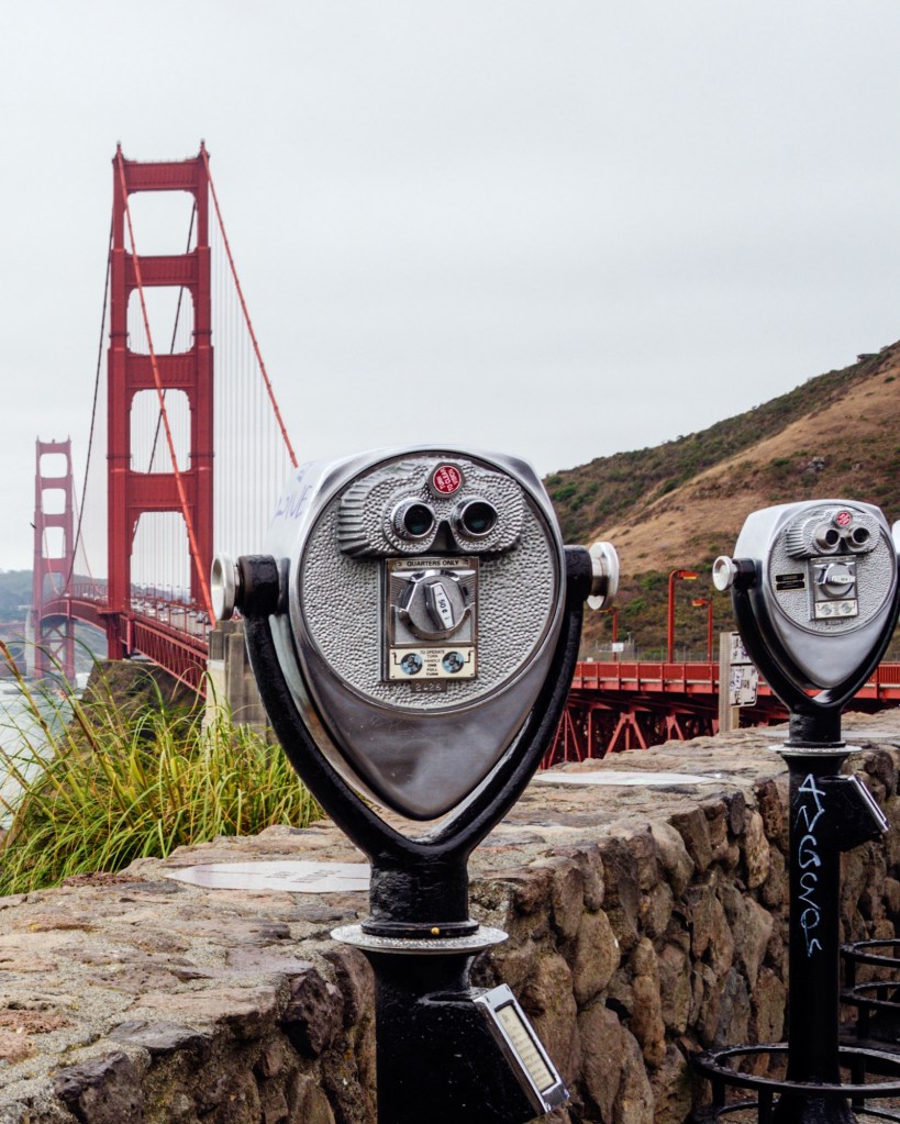 Aquí parecen unas personas mirando, o más bien de espaldas, al Golden Gate, en un día típico de San Francisco, nublado a ratos soleado a ratos…