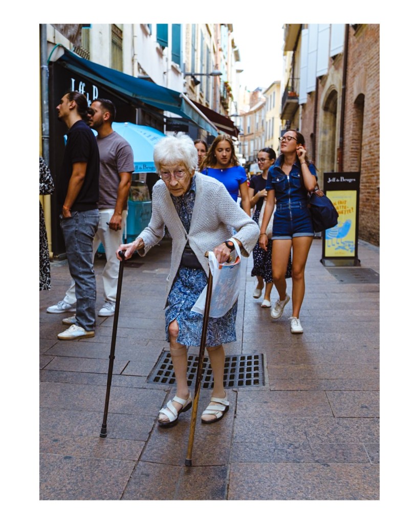 Es el fascinante cruce de caminos entre generaciones. Un recordatorio visual de que cada paso, lento o rápido, tiene su propio ritmo y su propia historia. Para mí, la fotografía callejera es precisamente esto: capturar estos instantes que revelan la profunda humanidad que compartimos, sin importar la edad. Es encontrar poesía en lo cotidiano y un universo en una sola mirada. 📸🌍