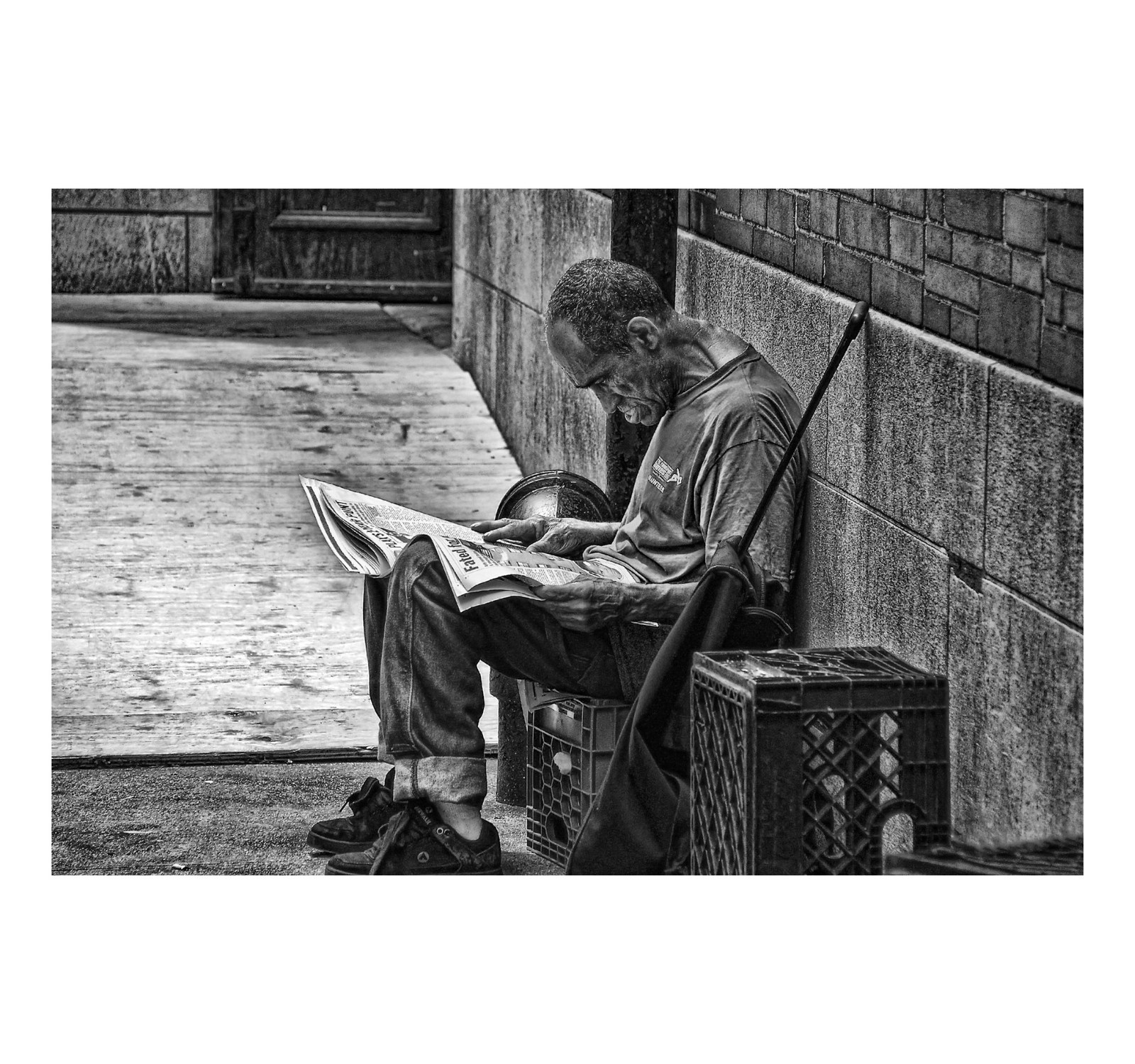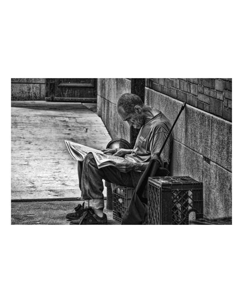 Recuerdo este momento perfectamente: un hombre, completamente ajeno al caos de la ciudad, tomándose un respiro tranquilo para leer el periódico. Una de esas escenas cotidianas que, para mí, están llenas de historia. El blanco y negro me pareció la única forma de capturar la esencia de ese instante. 📸