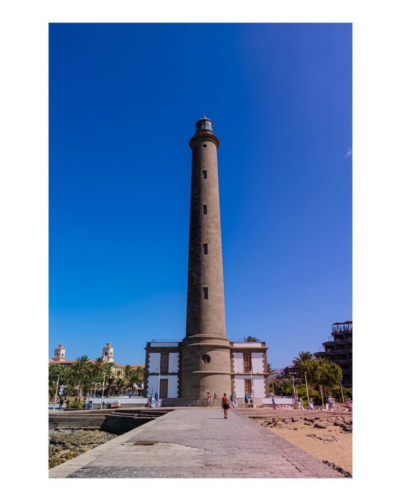 El Faro de Maspalomas se alza como un auténtico vigía, un testigo de piedra que ha visto pasar incontables historias, tormentas y atardeceres sobre las famosas dunas que lo rodean. En un día así, con el cielo de un azul intenso, su silueta es simplemente impresionante.