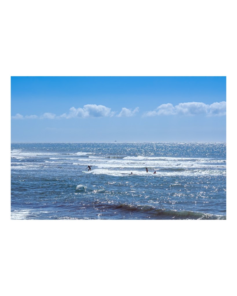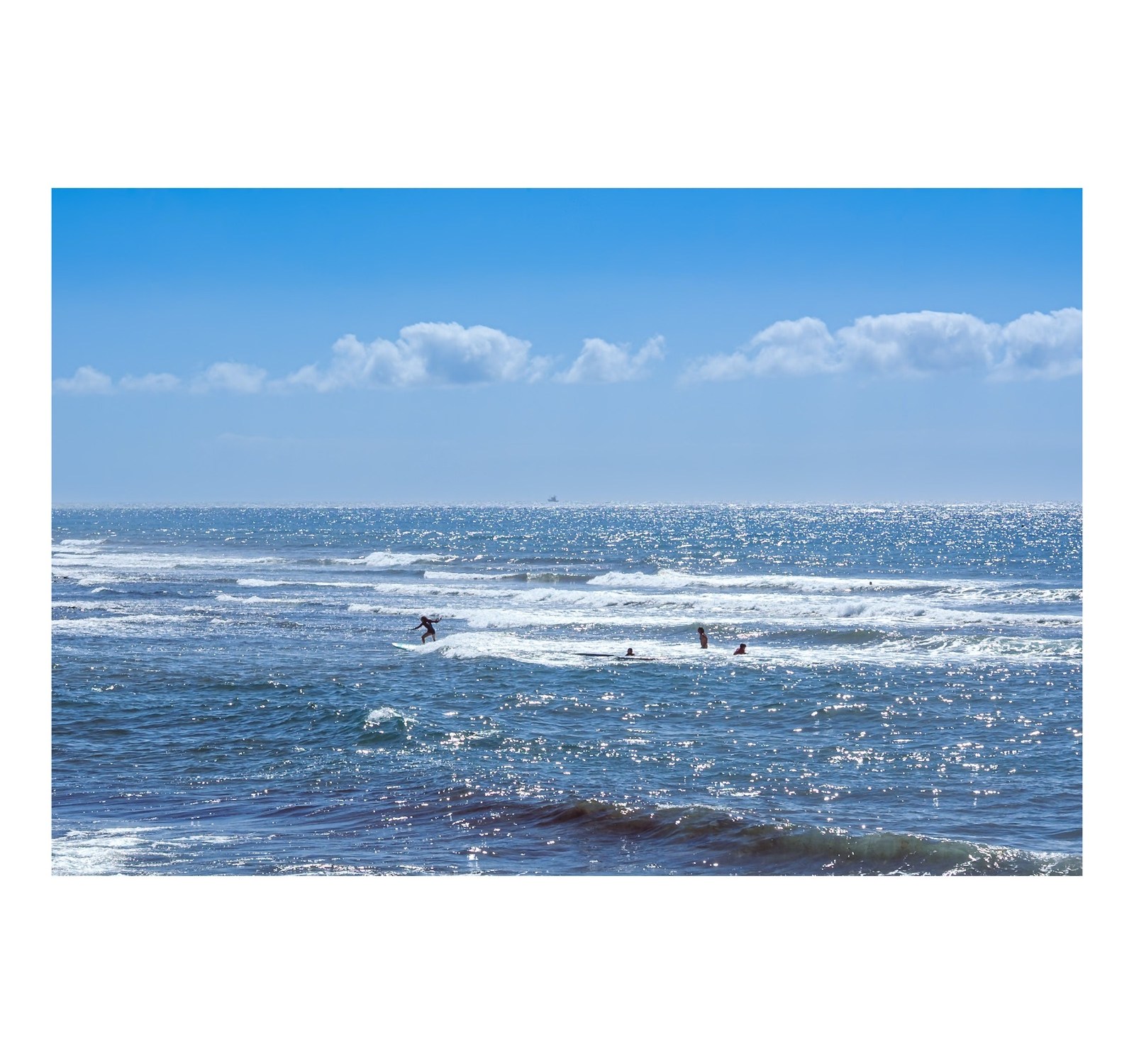 En medio de esa inmensidad azul, varias siluetas esperan con paciencia. Son los surferos, fusionados con el paisaje, atentos al mar. Para mí, la fotografía de viajes ✈️ y la street photography no solo se encuentran en el asfalto; a veces, la «calle» es el océano, y la «vida» es esta danza de espera y adrenalina.