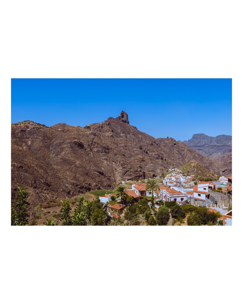 Hay lugares donde la naturaleza y la arquitectura parecen abrazarse, y Tejeda es, sin duda, uno de ellos. Desde esta perspectiva, el pueblo se ve como un pequeño oasis de casas blancas y tejados rojizos, protegido por la inmensidad de las montañas volcánicas y la icónica presencia del Roque Bentayga.