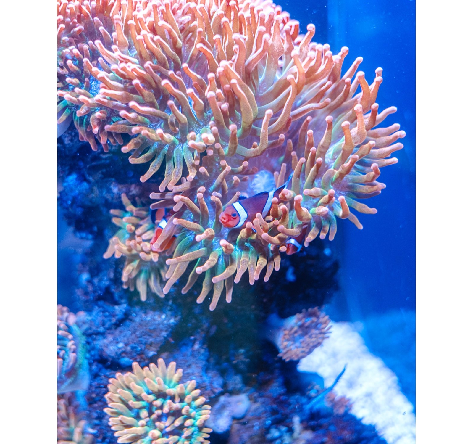 Lo que más me fascina de la fotografía es cómo la luz y el color pueden cambiarte el estado de ánimo. Pasar de los grises urbanos a estos naranjas vibrantes y azules profundos es un respiro para la mente. Observar a este pequeño «Nemo» refugiado en su anémona me recordó que, al igual que en la fotografía callejera, en la naturaleza todo se trata de encontrar el momento exacto y el encuadre perfecto. 📸✈️
