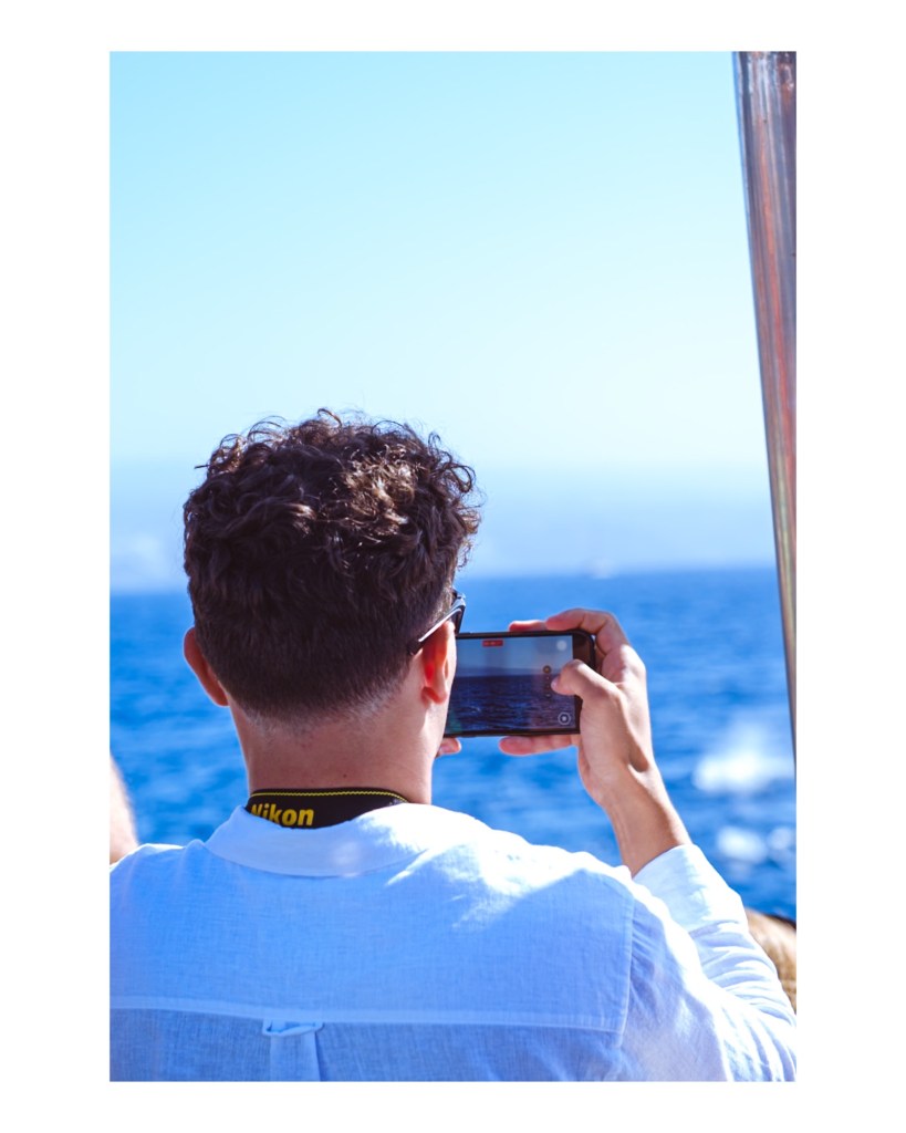 Es la esencia de la street photography llevada al océano: capturar la realidad de quienes intentan, precisamente, capturar su propia realidad. Un baile entre lo natural y lo tecnológico en mitad del Atlántico. 🚢✨