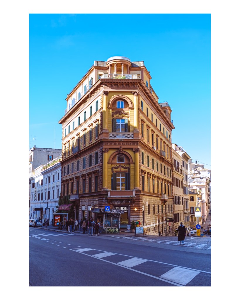 En el corazón de Roma, justo donde la Via Cavour se cruza con la Via degli Annibaldi, se alza este imponente edificio que apodan cariñosamente como el «Flatiron romano». 🏛️✨